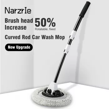 15 Degree Bend Telescoping Car Wash Brush - Flexible Chenille Cleaning Mop