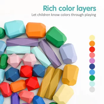 Wooden Stacking Rocks Sensory Toddler Toy – Montessori Learning Blocks for Kids